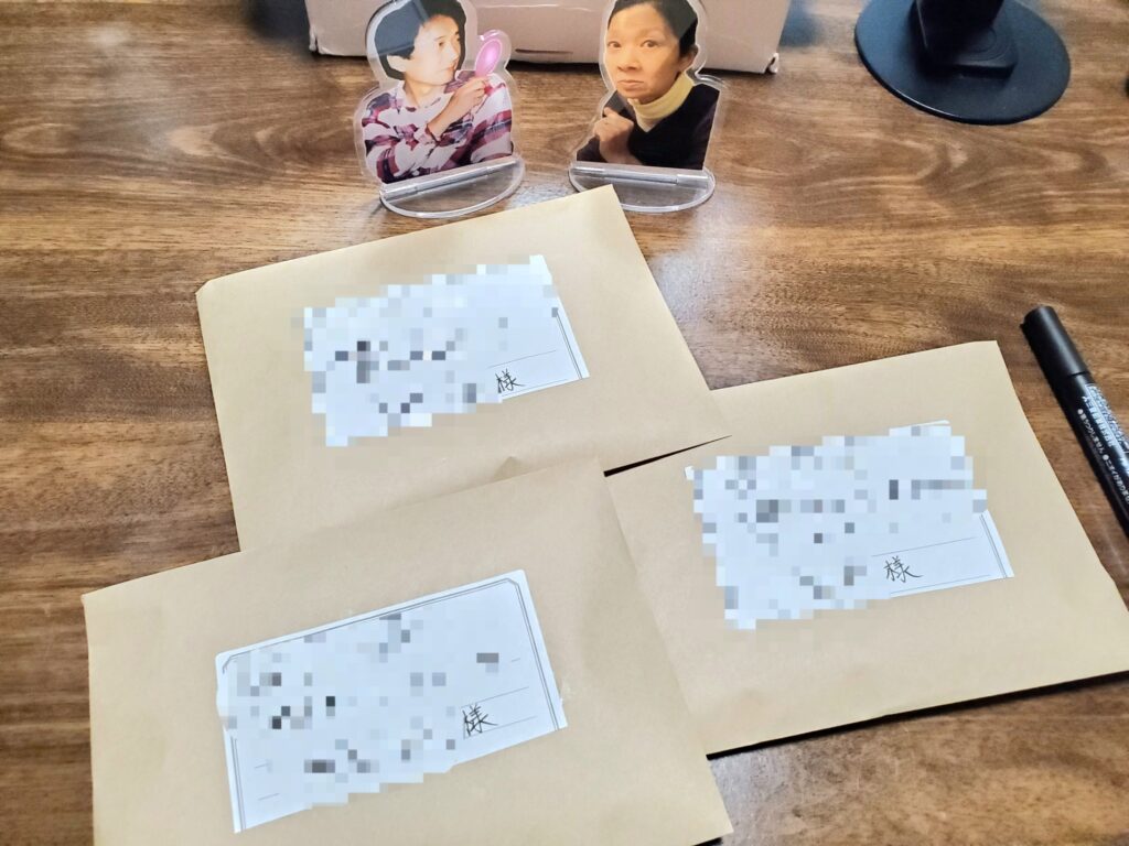 これらを両親が見守るなか姉・親友さゆり・S君へと発送準備をした