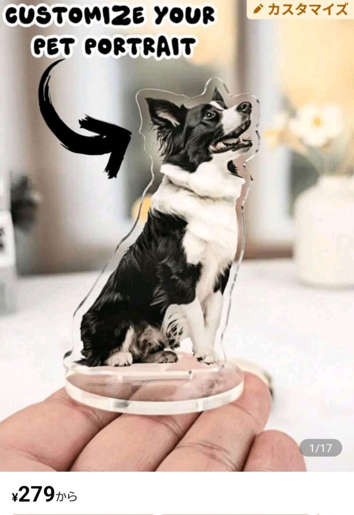 愛犬や愛猫など自分のペットの写真をアクスタ(アクリルスタンド)にできるという商品をみつけた