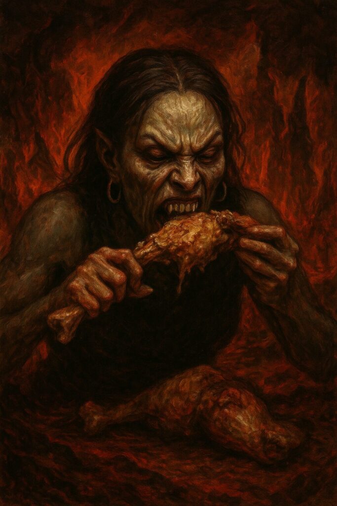 ”人間の骨を砕きながら生肉を喰う鬼”